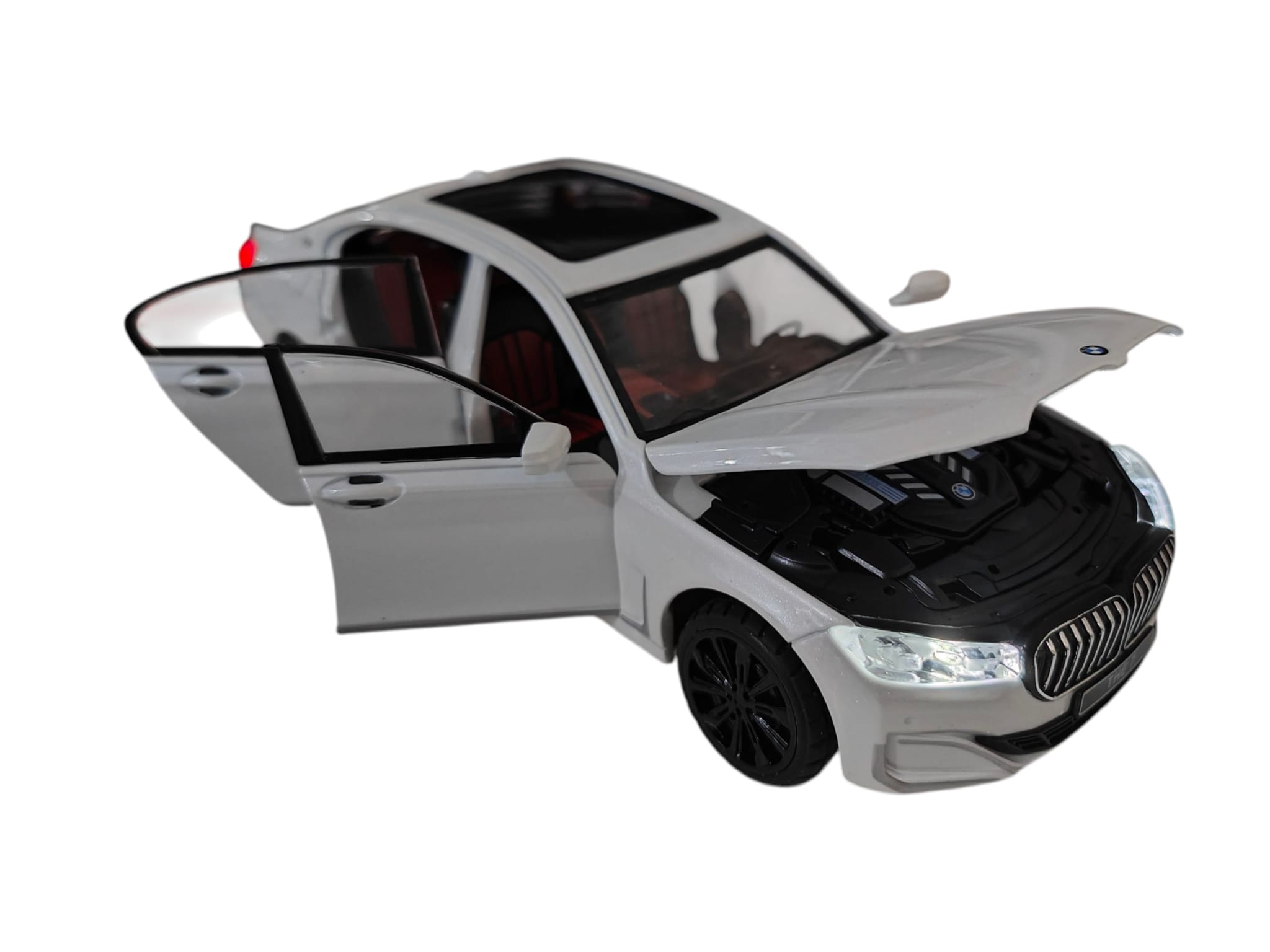 Se deschid cele 4 usi, capota, portbagajul si are sunete si lumini.